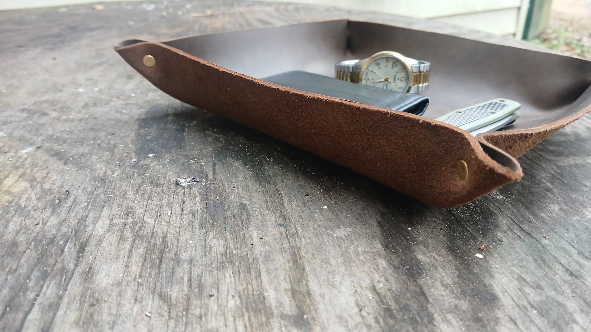Tired of losing stuff from your pockets? Dont have to look for your keys or wallet anymore. This handcrafted full grain leather tray is a great place for a pocket dump at the end of the day. Keep your edc organized with class on your dresser or nightstand.